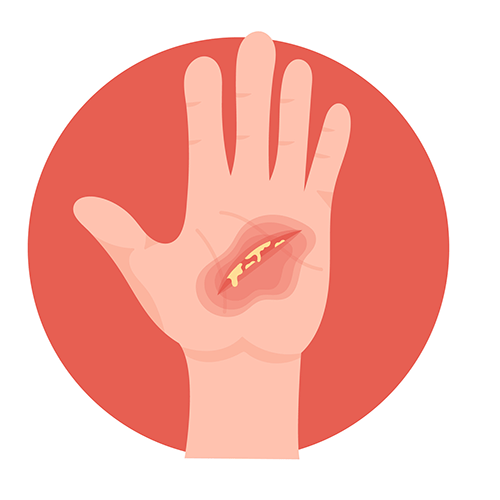 • Blisters or fluid-filled lesions